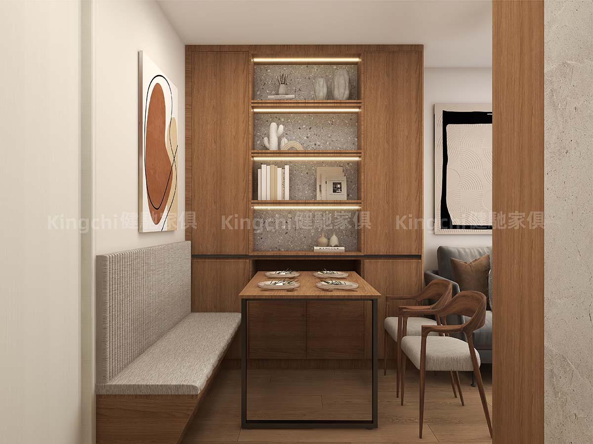 The Japanese-style design fills the whole house with a fresh and natural, warm and comfortable living atmosphere. Efficient storage is achieved. The design of the telescopic dining table is more flexible and versatile, making full use of every inch of space, making the use of space more freely.
