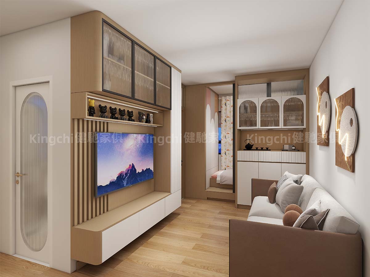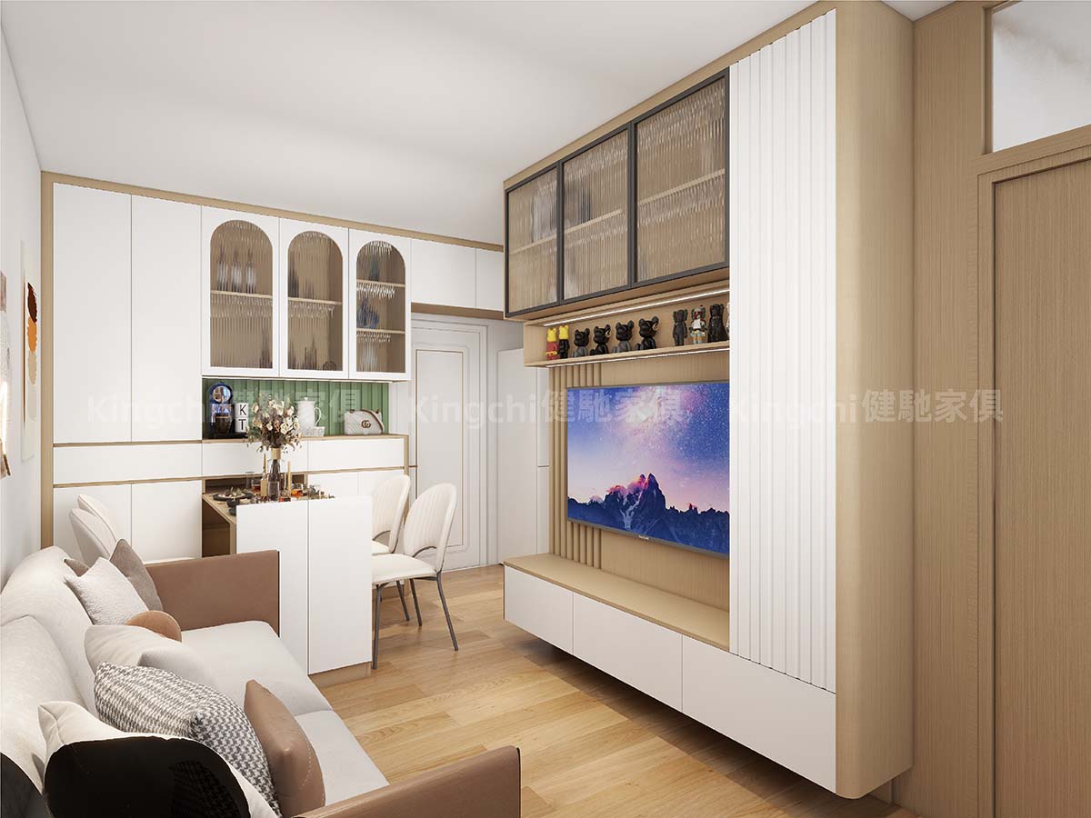 Easily do the living room partition and still maintain the indoor light. Each area is independent also functional online, embedded with a variety of material combinations, highlighting the layered sense of furniture!