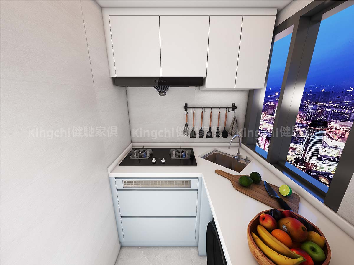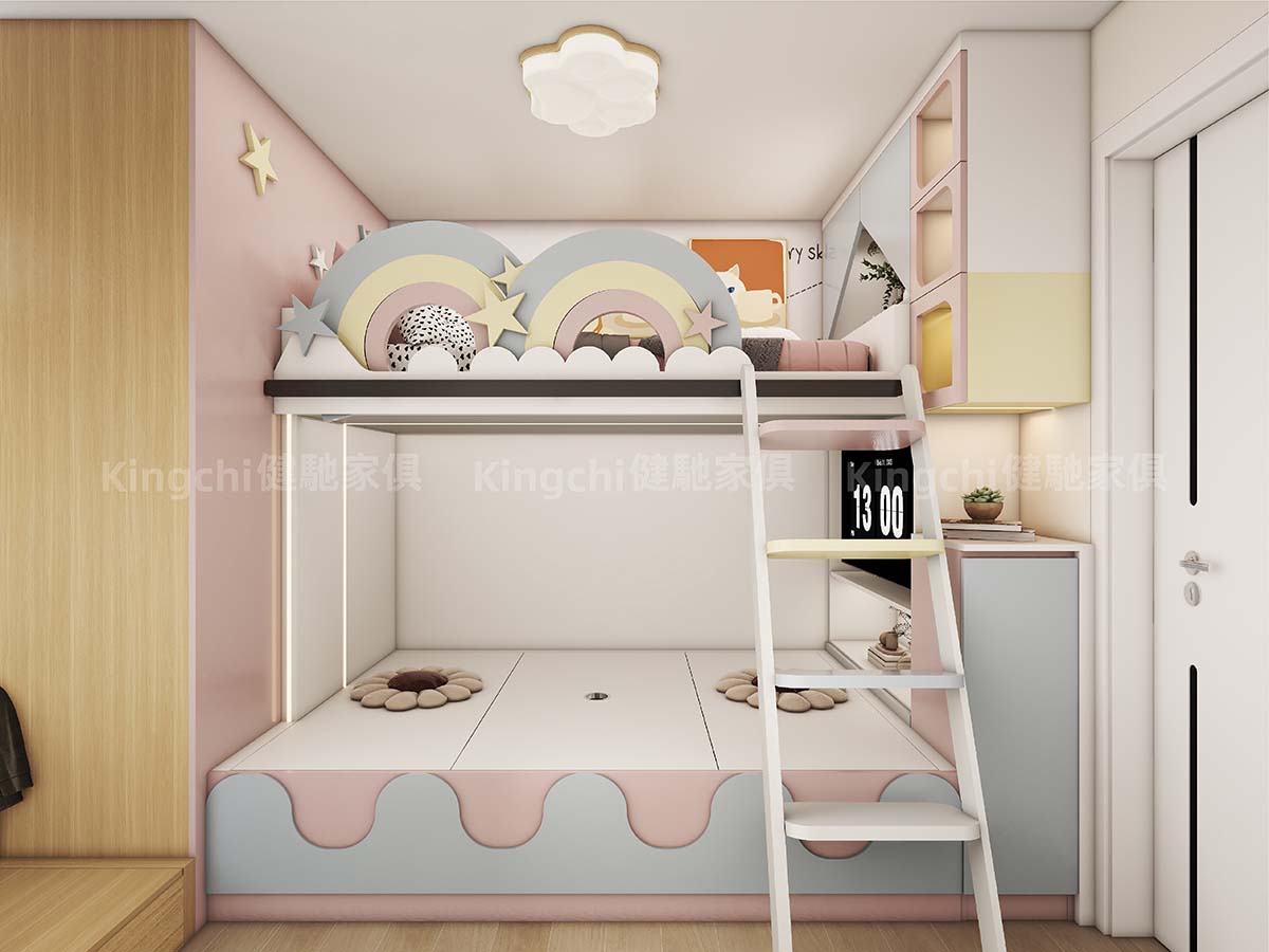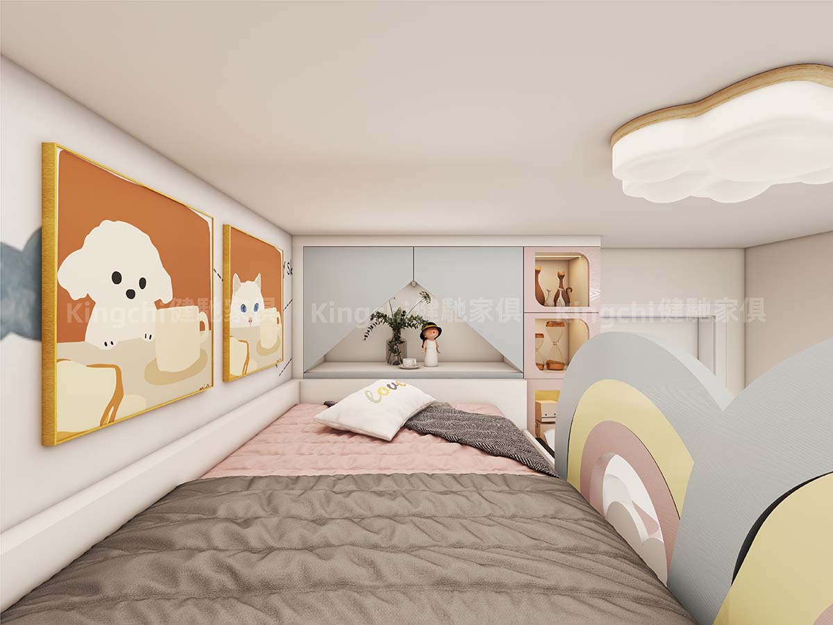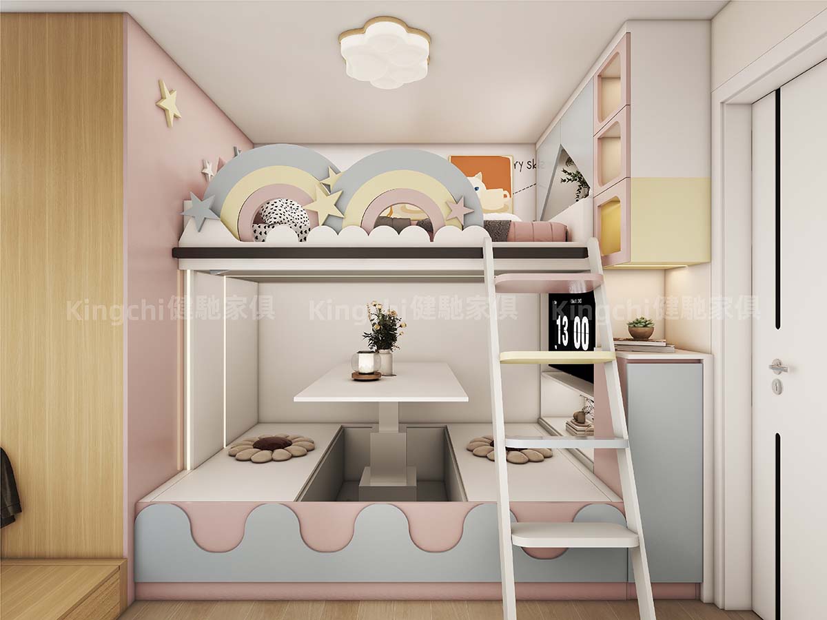 Through the optimization of the design, one bedroom can accommodate 4 people living without too crowded. Using the advantages of using the top wardrobe separates the two-zone bedroom, and realizes two-sided storage, no matter how small the house is through the design can achieve multiple people living!
